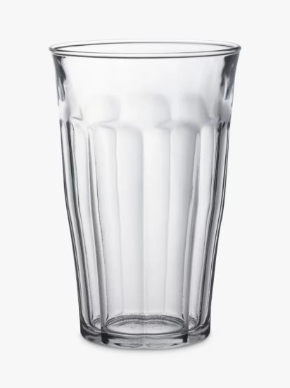 This set of four glasses will accompany you through breakfast, lunch and dinner. Made of tempered glass, they can be used for juice in the morning, a refreshing glass of water at lunch, and drinks in the evening.